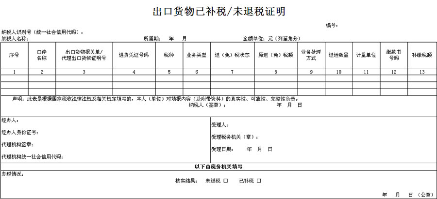 7.第7栏“退(免)税状态”:根据实际情况,在“尚未申报退(免)税”“已办理退(免)税”中选择一项填写。若本栏次选择“尚未申报退(免)税”,不填写第8、9、12和13栏。若本栏次选“已办理退(免)税”,外贸企业按要求填写第8、9、12和13栏,生产企业按要求填写第8、9栏。