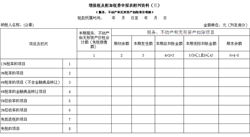 四、《增值税及附加税费申报表附列资料(三)》(服务、不动产和无形资产扣除项目明细)