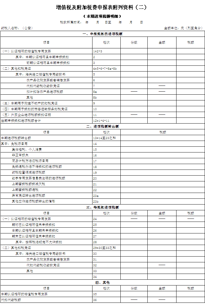 10.第33栏“其他”:反映已取得但截至本期期末仍未申报抵扣的其他扣税凭证的情况。