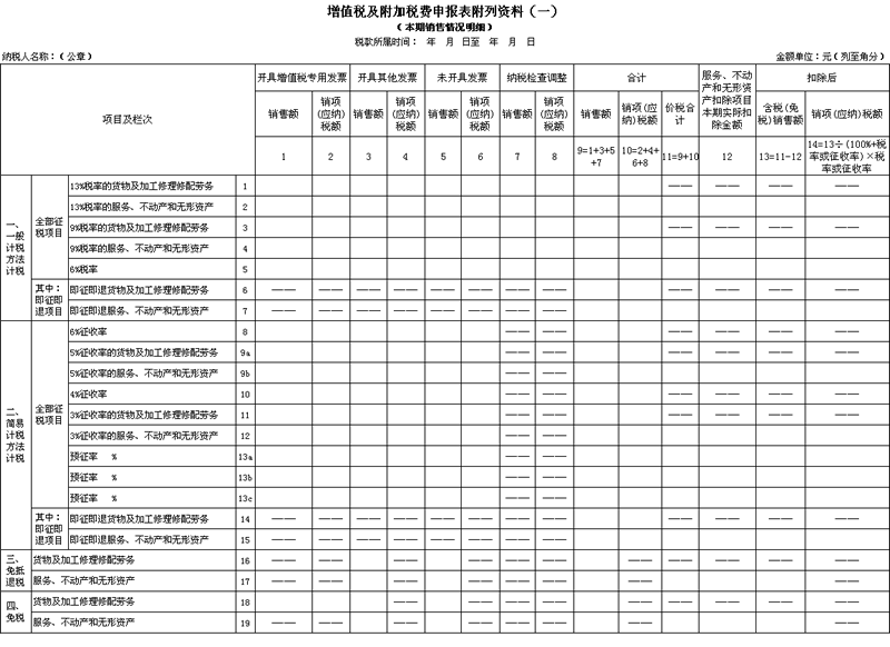 二、《增值税及附加税费申报表附列资料(一)》(本期销售情况明细)