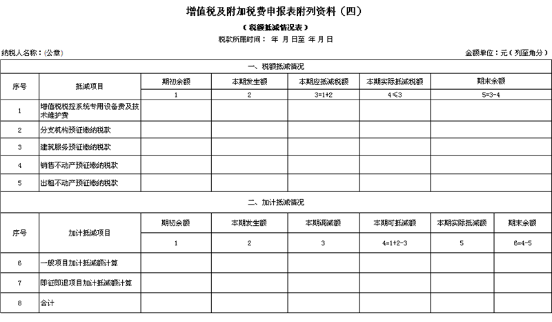 六、《增值税及附加税费申报表附列资料(四)》(税额抵减情况表)填写说明