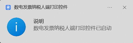 5. 电脑桌面出现如图 5所示图标,并在任务栏弹出“数电发票纳税人端打印控件已启动”的提示,如图6所示,表示控件已安装完成并成功启动。
