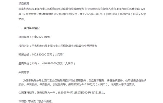 名称: 国家税务总局上海市宝山区税务局宝林路等物业管理服务公开招标公告