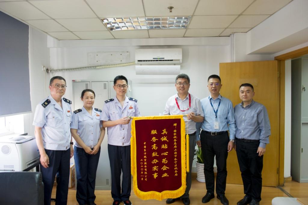 近日,中国东方航空股份有限公司专程至长宁区税务局,向个人所得税综合所得年度汇算清缴工作中区局提供的优质、高效的纳税服务表示感谢,并赠送了“真诚贴心为企业服务高效办实事”锦旗。