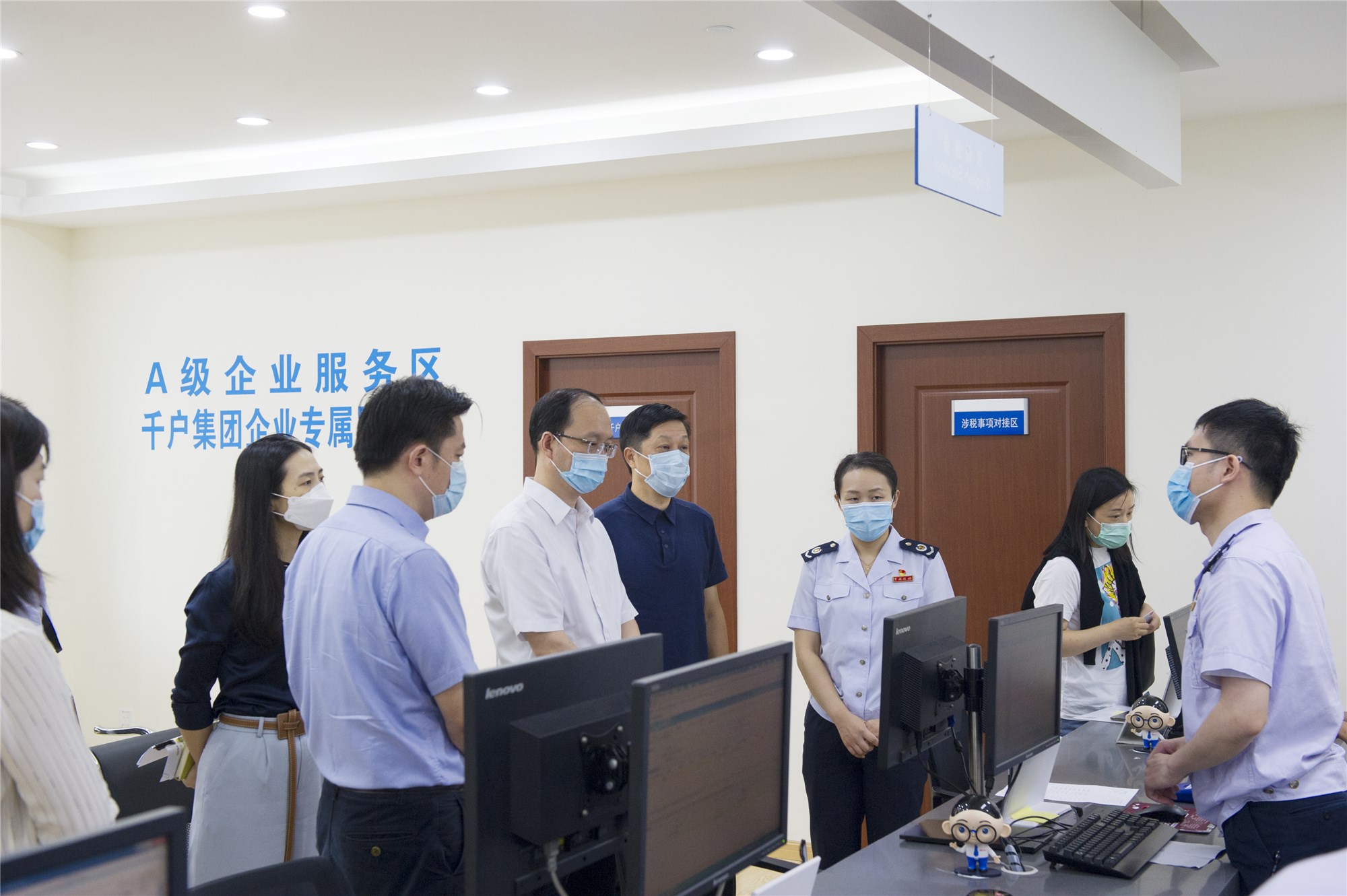 李俊珅同志实地调研了办税服务厅窗口设置、涉税事项办理、自助办税服务等工作开展情况,现场观看了自然人纳税清单制作、以前年度预扣预缴信息更正申报等事项的操作演示,细致了解纳税人办税体验,并听取长宁区税务局主要领导、分管领导及相关部门负责人关于自然人税务局税务端试点上线运行情况、值班制度、应急处理、舆情监控等方面的工作汇报。