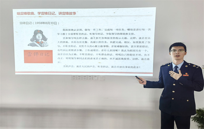 “学习雷锋好榜样,忠于革命忠于党,爱憎分明不忘本,立场坚定斗志强……”3月5日是学雷锋纪念日,区局青年理论学习小组积极开展“唱雷锋歌曲、学雷锋日记、讲雷锋故事”专题学习活动。活动期间,团员青年合唱了《学习雷锋好榜样》,围绕“苦难童年、伟大一生、世代传承”等方面对雷锋故事进行了梳理、讲述和学习,让雷锋精神的强大向心力和感召力入脑入心,教育引导团员青年以实际行动为税收事业增光添彩。