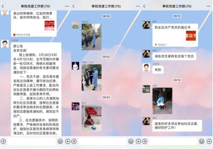 3月27日当晚,区局党员干部通过“先锋上海”小程序完成线上报到,就地转为志愿者;3月28日当天,区局共有29名党员主动向居住地村居党组织报到,累计服务时长104小时。在疫情防控第一线,他们亮明身份、认领任务,与居住地村居干部群众一同奋战,用实际行动为打赢疫情防控战贡献新时代税务力量。