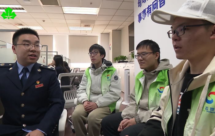 同样是现场教学基地之一,在虹口区税务局,穿着绿马甲的大学生们,正在旁听着远程咨询。