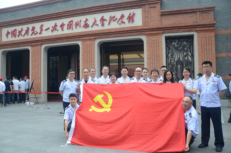 在黄浦区黄陂南路,一幢沿街砖木结构一底一楼的旧式石库门住宅建筑,正是100年前中国共产党第一次全国代表大会召开的地方。经过了历史的风云变幻,如今仍悄然伫立,向世人诉说着那段峥嵘岁月。纪念馆内的基本陈列由“中共一大会议室旧址陈列”和“中国共产党创建历史文物陈列”两部分组成。走进其中,有如穿越一百年的历史烟云,亲临那个积贫积弱、主权沦丧、饱受蹂躏的旧中国,而当进入蜡像室,区局党员干部驻足看到当年出席中共“一大”会议的15位出席者(包括2位共产国际代表)围桌而坐、热烈讨论的生动场景时,仿佛在一条悠长黑暗的隧道中,看到了一丝曙光,切身感受到了共产党先辈们忧国忧民的使命担当,也更加坚定了入党的初心。