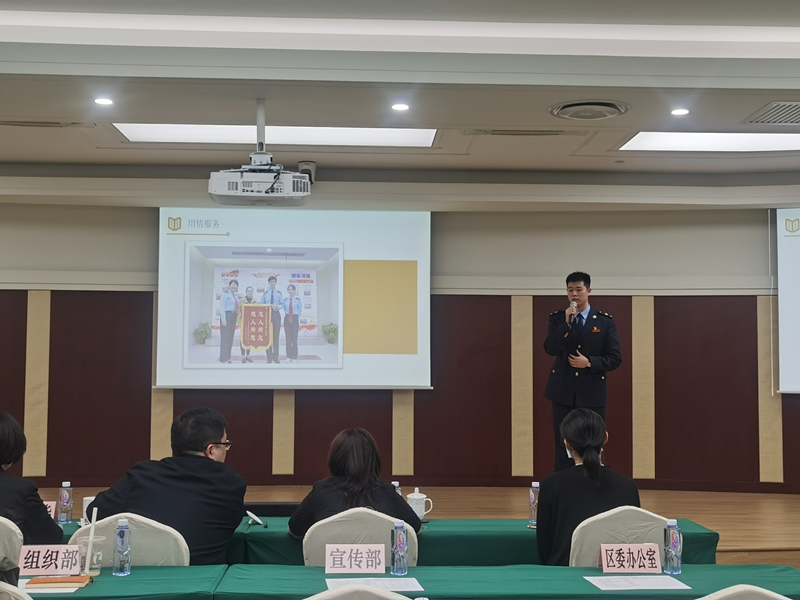 获奖的背后是直面挑战的拼搏意识。此次活动在文稿初评阶段共有五十家单位参加,最终选拔出十二家单位进入案例宣讲环节。负责此次活动的胡鹏轩同志没有畏惧激烈的竞争,他为了说好办税服务厅的故事,找到了当时的办税人员进行详谈,了解故事的细节,让文稿更加的真实和富有情感。在展示现场,他分享的案例吸引了在座所有人的目光,引得全场几次热烈的掌声。数十次的排练演说和反复对语调的雕琢给了他信心与底气,让他用自信洪亮的声音诉说着办税服务厅党员们服务人民,服务企业,服务社会的初心;让他用亲切温暖的语调讲述着想群众所想,急群众所急的税务精神,表达着对税务蓝的款款深情。