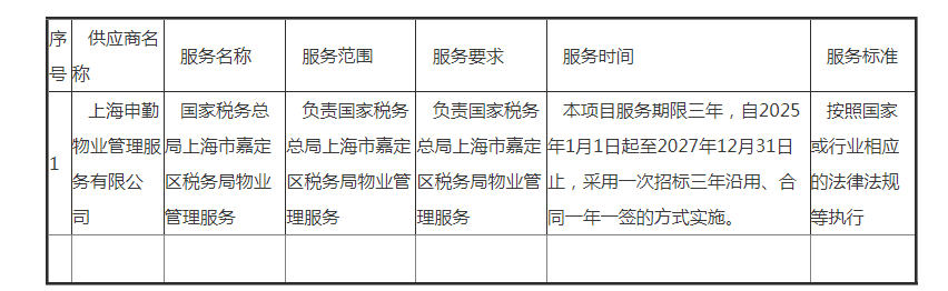 二、项目名称:国家税务总局上海市嘉定区税务局物业管理服务
