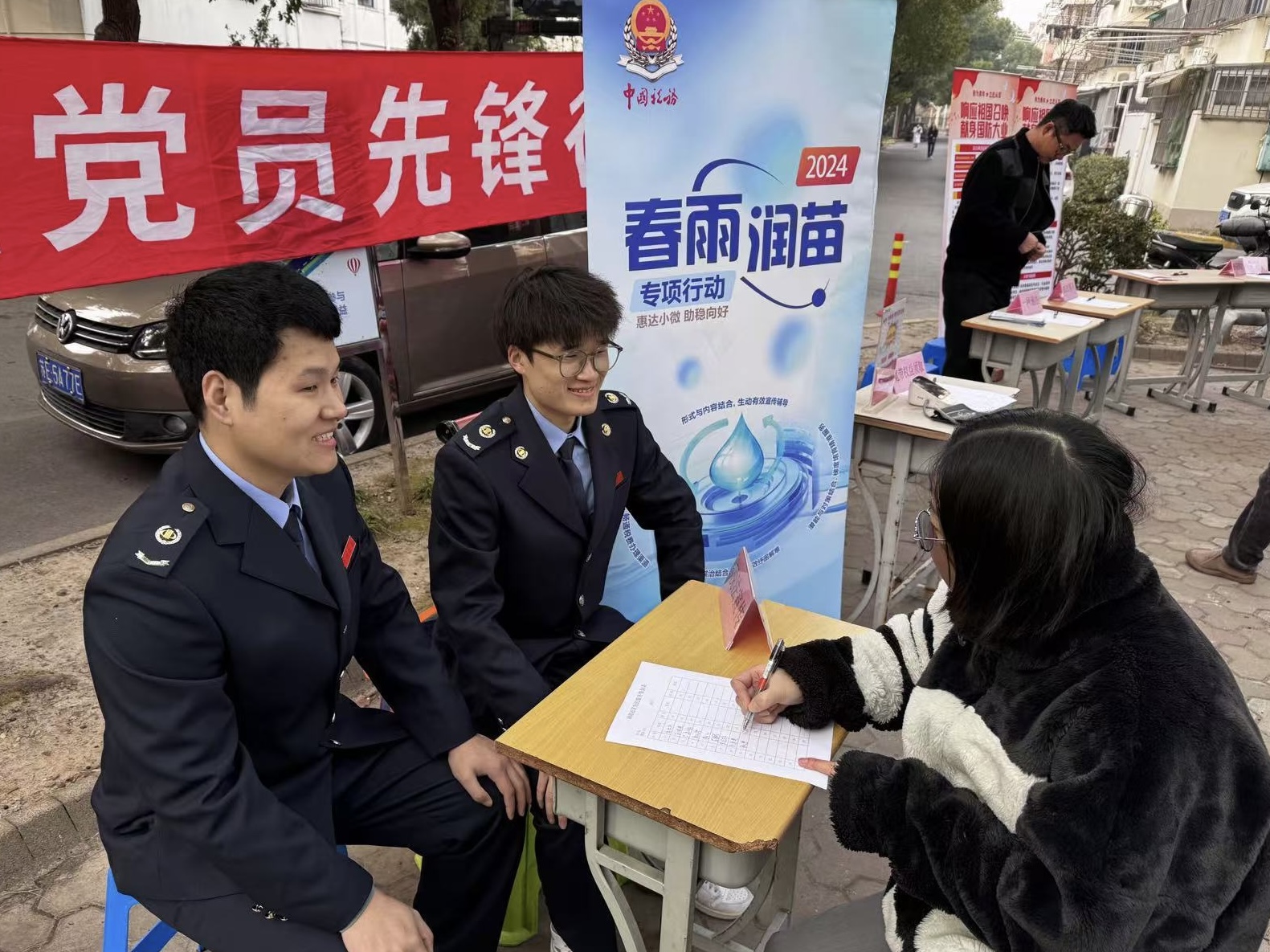 近日,嘉定区税务局干部走进南陈社区,开展送政策、暖民心的税法宣传便民活动,为社区带来了融融暖意。