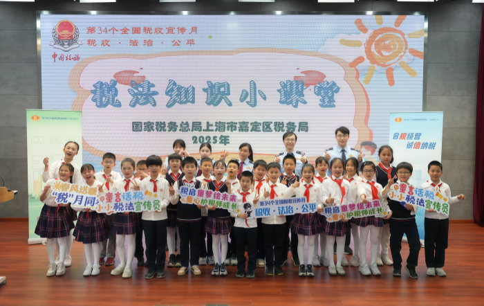 为普及税法知识,培植青少年法治意识,嘉定区税务局走进普法实践基地——城中路小学,开展“税收知识进校园”主题宣传活动,通过沉浸式课堂、互动实践等形式,在学生心中播下“依法纳税”的种子。