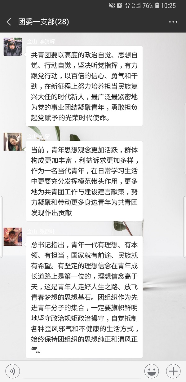 线下集中学习为主导,各团支部结合自身实际,分别以“牢记党中央对青年工作的重要要求”、“当前共青团聚焦主责主业的突出矛盾点”、“履行新时代共青团的职责使命”为主题,积极开展线下集中学习。会上,由团支部书记逐字逐句领读,并现场进行互动交流,确保全体与会青年真正领会学习内容。