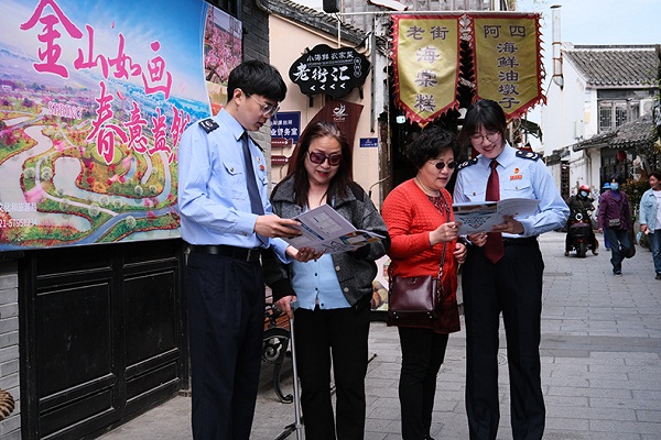 位于杭州湾畔的金山嘴渔村,是全市现存的最后一个渔村。早晨的渔村,脱离了现代城市的忙碌与繁华,显得格外得幽静,商户们陆陆续续开门、摆摊,油锅里的萝卜丝饼、小黄鱼冒着腾腾热气,滋啦作响,诉说着渔村的丝丝生气。税务干部带着宣传资料来到渔村街头,向商户们详细介绍相关税收政策,向赶早前来的游客们发放宣传册,传递最新政策,答疑解惑,用实际行动助力乡村发展。