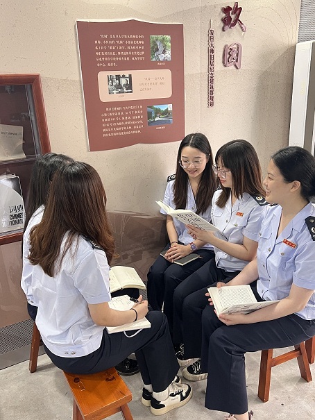 青年干部们在复旦大学陈望道旧居(《共产党宣言》纪念馆)聆听习近平总书记讲述“真理的味道非常甜”的故事。学习政治理论,感悟红色精神。在旧居的车库影院观看了市级机关阅读马拉松挑战赛示范分享会,集中学习了税务系统主题教育第一批总结暨第二批部署会议精神。
