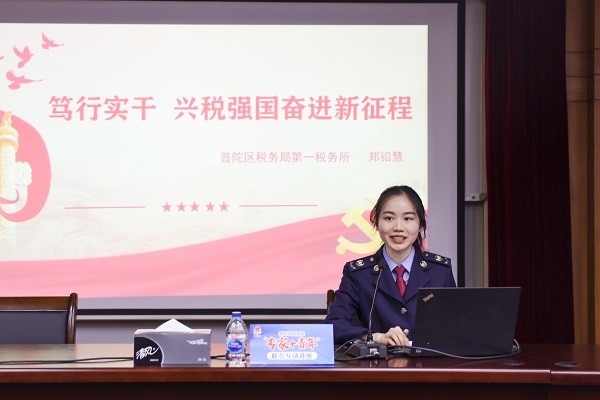 接着,区局两名区青年宣讲团成员分别围绕二十大报告原文内容,结合税收实际工作、自身成才经历,用生动鲜活的事例和饱含深情的讲述,做了一场激情澎湃的宣讲,让党的二十大精神有温度、有厚度地根植于普税干部心中,进一步引导区局干部学习好、宣传好党的二十大精神。丁教授作为此次学习会的专家团,对两位青年宣讲做出点评,并对还需进一步完善的地方提出了有效建议,帮助青年宣讲员对宣讲内容进行“精修”,不断丰富宣讲内容,提升宣讲稿件质量。
