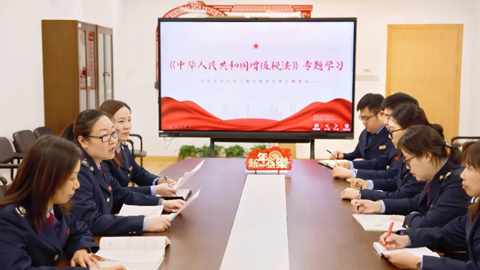 第五稽查局以“强基工程”为导向,开展业务讨论会,组织税务干部学习《中华人民共和国增值税法》,准确把握政策变化及影响,不断夯实税收业务基础,进一步提升维护税收公平和正义的能力。