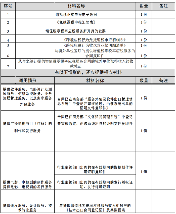 2.《国家税务总局关于〈适用增值税零税率应税服务退(免)税管理办法〉的补充公告》(国家税务总局公告 2015 年第 88 号)第四条