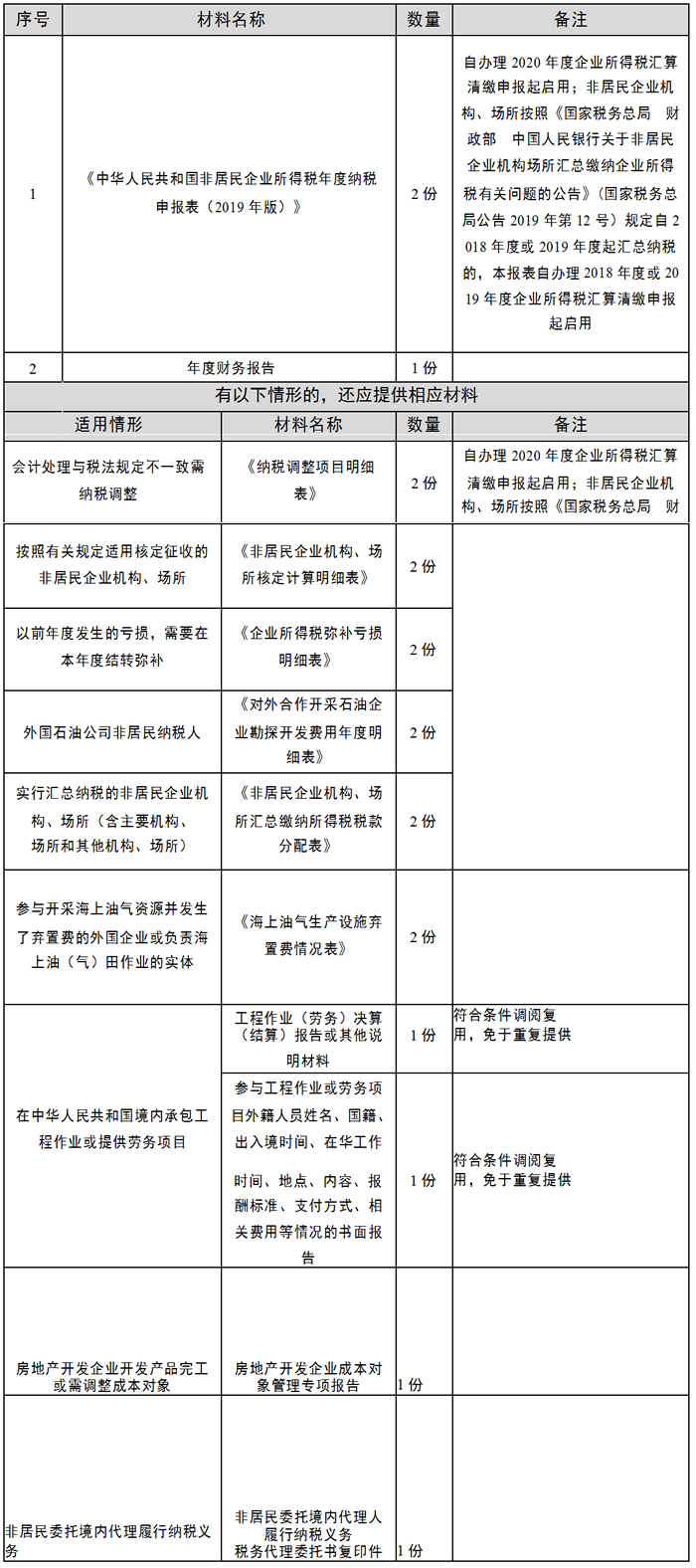 12.《中华人民共和国非居民企业所得税年度纳税申报表(2019 年版)》启用前,按规定使用《中华人民共和国非居民企业所得税季度和年度纳税申报表(适用于核定征收企业)/(不构成常设机构和国际运输免税申报)》或《中华人民共和国非居民企业所得税年度纳税申报表(适用于据实申报企业)》。