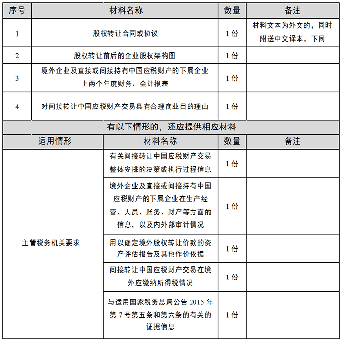 《国家税务总局关于非居民企业间接转让财产企业所得税若干问题的公告》(国家税务总局公告 2015 年第 7 号)第九条、第十条