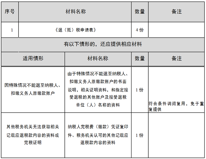 5.多缴税费证明资料包括:减免税审批文书、纳税申报表、税务稽查结论、税务处理决定书、纳税评估文书、税务行政复议决定书、生效的法院判决文书、增值税红字发票、税务机关认可的其他记载应退税款内容的资料。