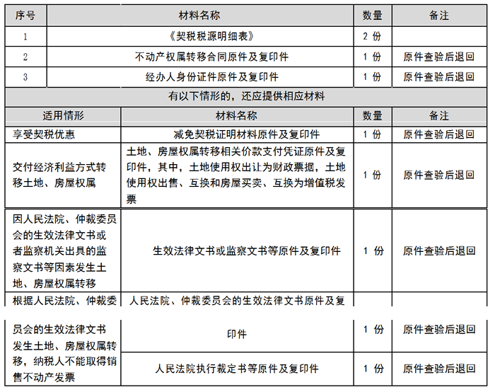 7.购买新建商品房的纳税人,因销售新建商品房的房地产开发企业已办理注销税务登记或者被税务机关列为非正常户等原因不能取得销售不动产发票的,可在税务机关核实有关情况后办理契税纳税申报。