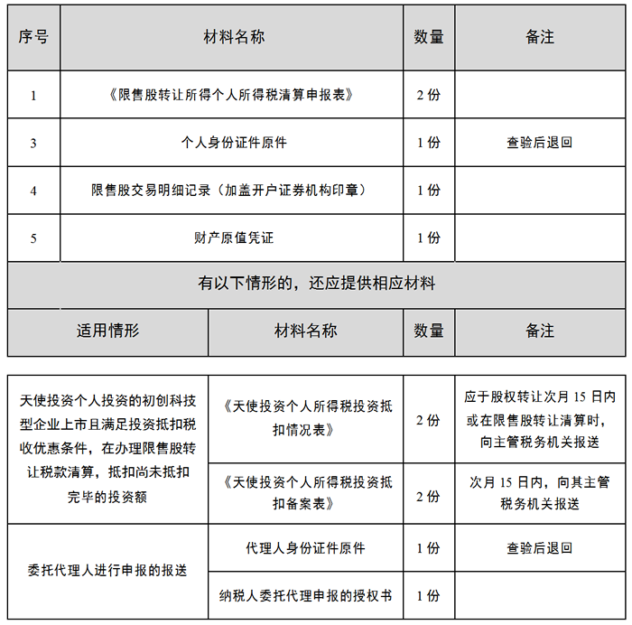 限售股转让所得个人所得税清算申报