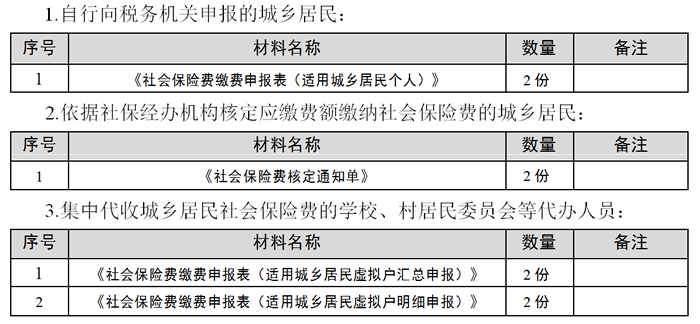 参加城乡居民基本社会保险的缴费人,以及代办单位集中代收城乡居民社会保险费的代办人员,应当依照法律、行政法规规定或者税务机关依照法律、行政法规规定确定的申报期限、申报内容,申报缴纳城乡居民社会保险费(省、自治区、直辖市另有规定的,按其规定执行)。