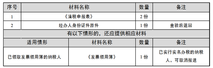 已实行“两证整合”登记模式的个体工商户向市场监督管理部门申请办理注销登记前,先向税务机关申报清税。清税完毕后,税务机关向纳税人出具《清税证明》,纳税人持《清税证明》到原登记机关办理注销。