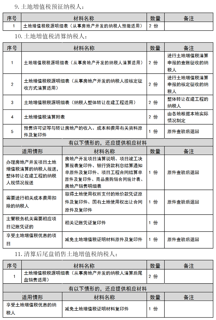 土地增值税清算、契税税源信息报告办理时间由省税务机关确定;其他即时