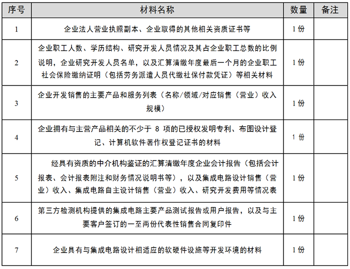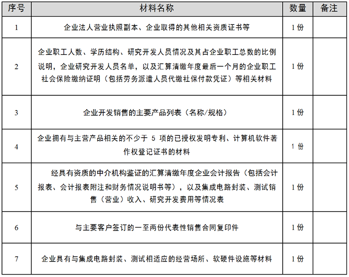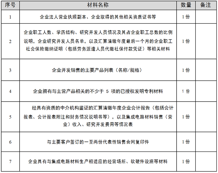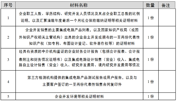 4.享受《财政部 税务总局 发展改革委 工业和信息化部关于促进集成电路产业和软件产业高质量发展企业所得税政策的公告》(2020 年第 45 号,以下简称“45 号公告”)政策规定的集成电路设计企业的材料