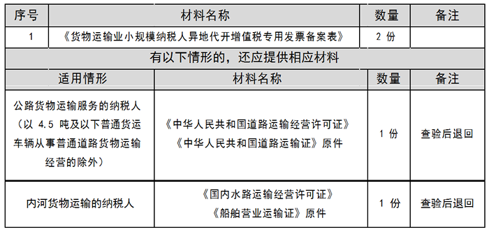 货物运输业小规模纳税人异地代开增值税专用发票备案