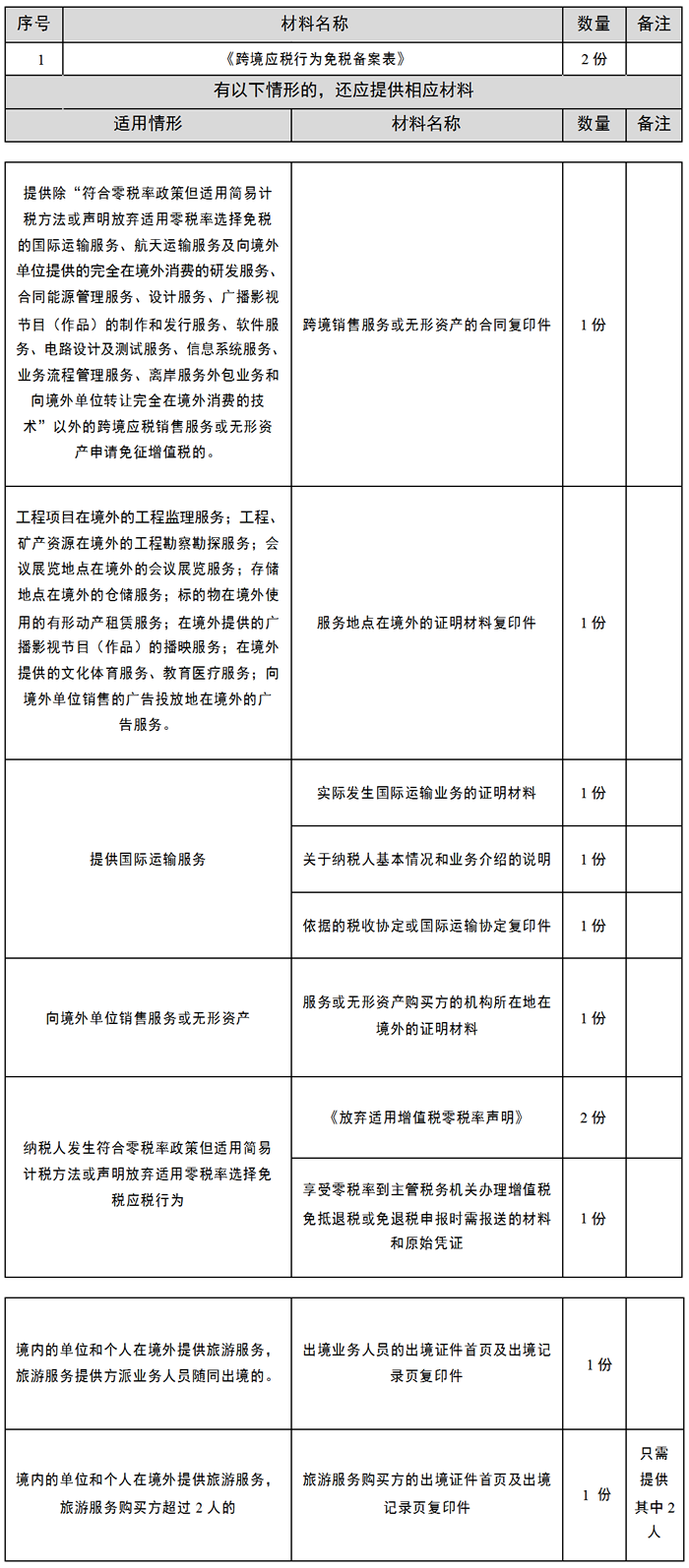 2.《国家税务总局关于发布<营业税改征增值税跨境应税行为增值税免税管理办法(试行)>的公告》(国家税务总局公告 2016 年第 29 号)第八条