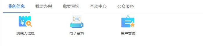 我的信息包含纳税人信息、电子资料、用户管理三个模块。界面如下图所示: