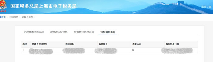 4.【资格信息】内容为纳税人资格认定信息,包括纳税人资格类型、有效期起止、作废标志和数据终止日期等,界面如下图所示:
