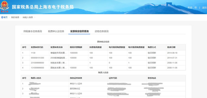 3.【发票核定信息】内容为包括票种核定信息和购票人信息,界面如下图所示:
