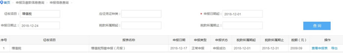 【申报信息查询】可查询申报缴税明细情况,点击后页面跳转至申报纳税界面,点击【查看申报表】进入查询界面。申报查询界面如下图所示:
