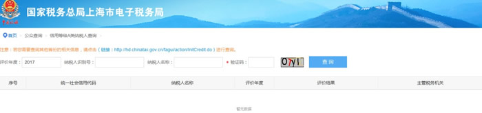 可对公告的信用等级 A 类纳税人进行查询。界面如下图所示: