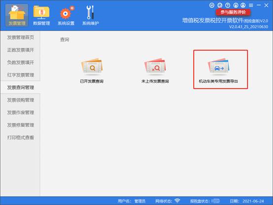 十五、如何导出用于票据关联的机动车类专用发票文件?