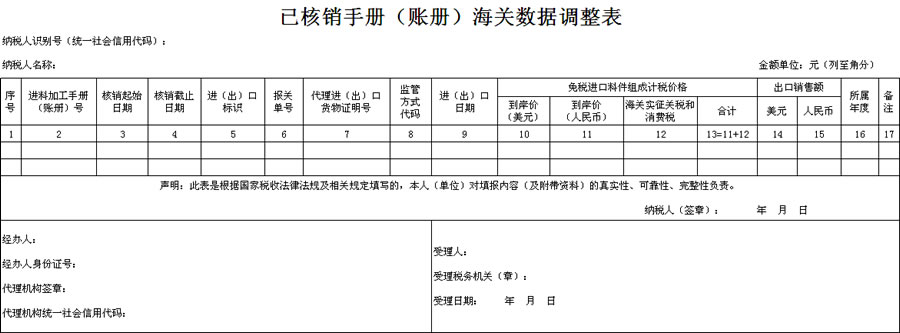 5.第6栏“报关单号”:填写进口或出口货物报关单号,规则为海关编号+0+项号,共21位;委托进(出)口企业不填此栏。