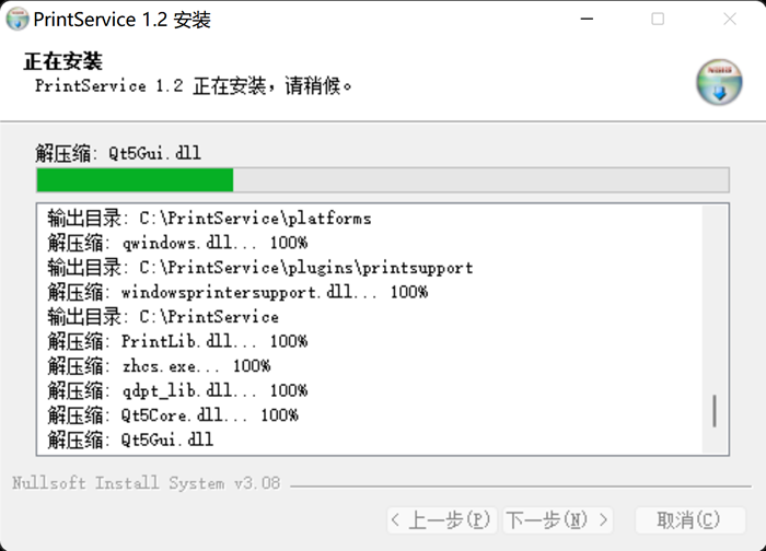 6. 打开如图 6所示界面,表示服务已安装完成,此界面可自动关闭无需操作。