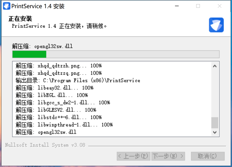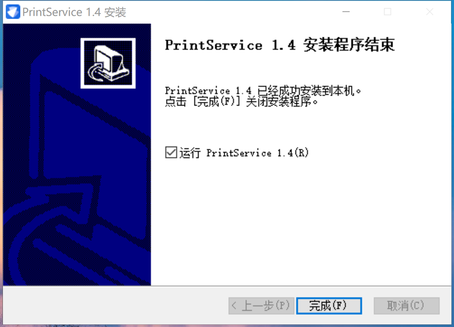 6. 打开如图 6所示界面,表示服务已安装完成,此界面可自动关闭无需操作。