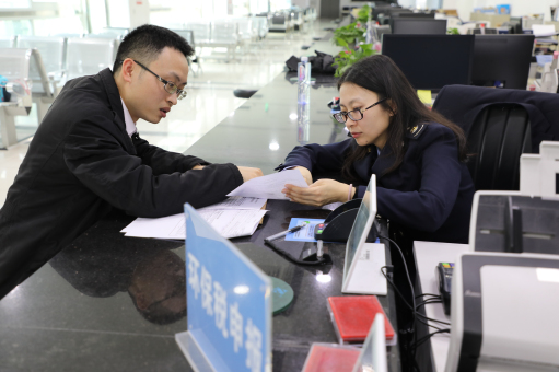 与此同时,也有纳税人拿着纸质申报表前来大厅申报,环保税专窗的税务干部热情指导纳税人填写表格,并将申报数据录入系统,很快一张环保税税单便交到了纳税人手中。纳税人表示很高兴搭上了绿色税制改革宣传主题日的顺风车,圆满完成了自己的首次环保税申报。