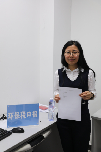 9时20分,在环保税申报体验区,上海良机冷却设备有限公司财务咸女士在税务干部的指导下,完成了环保税的网上申报,打印出了首张环保税申报成功的回执,成为了松江首位申报环保税成功的纳税人。