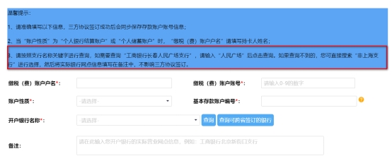 7.如果选不到网点,可以搜索“非上海支行”代替,并在【备注】字段中录入开户银行的实际网点信息。