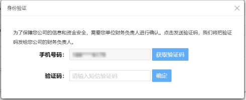 10.为保障企业资金安全,点击【提交】后,系统会查询企业注册地税务登记信息中财务负责人的移动电话号码,并要求短信验证码进行校验。