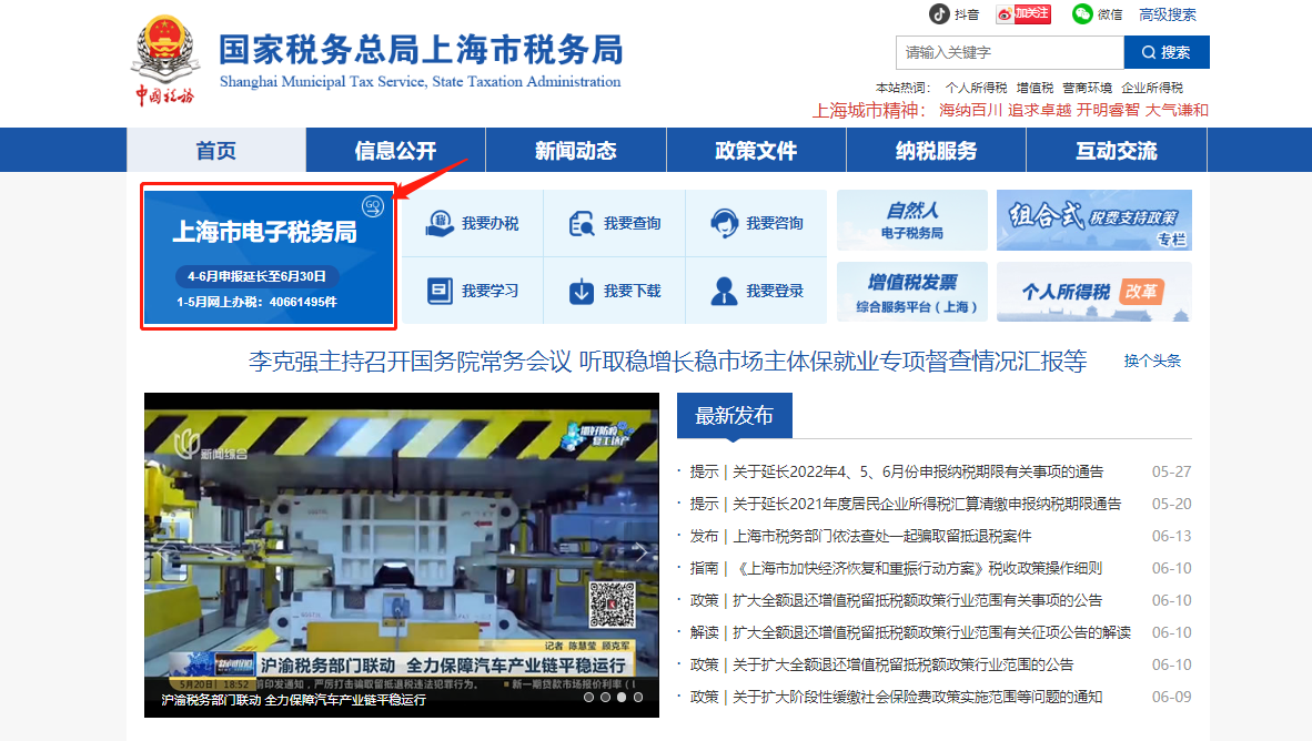①登录国家税务总局上海市税务局网站(网址:shanghai.chinatax.gov.cn);