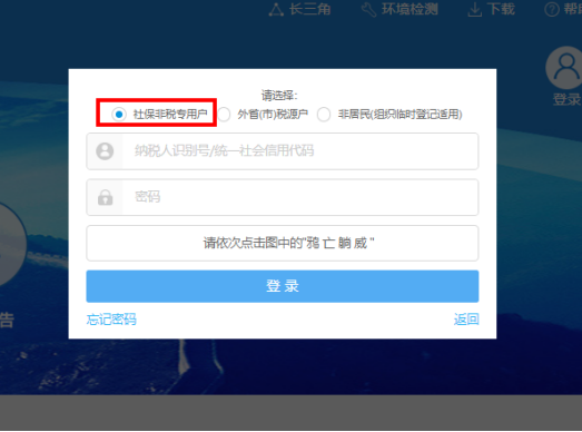 注:在本市无需办理涉税事项、仅需缴纳社保费的特殊单位,可以通过电子税务局注册登录为“社保非税专用户”,并使用电子税务局相关功能模块在线完成社保费申报缴纳。注册社保非税专用户的详细操作见本章“1.4.注册社保非税专用户”。