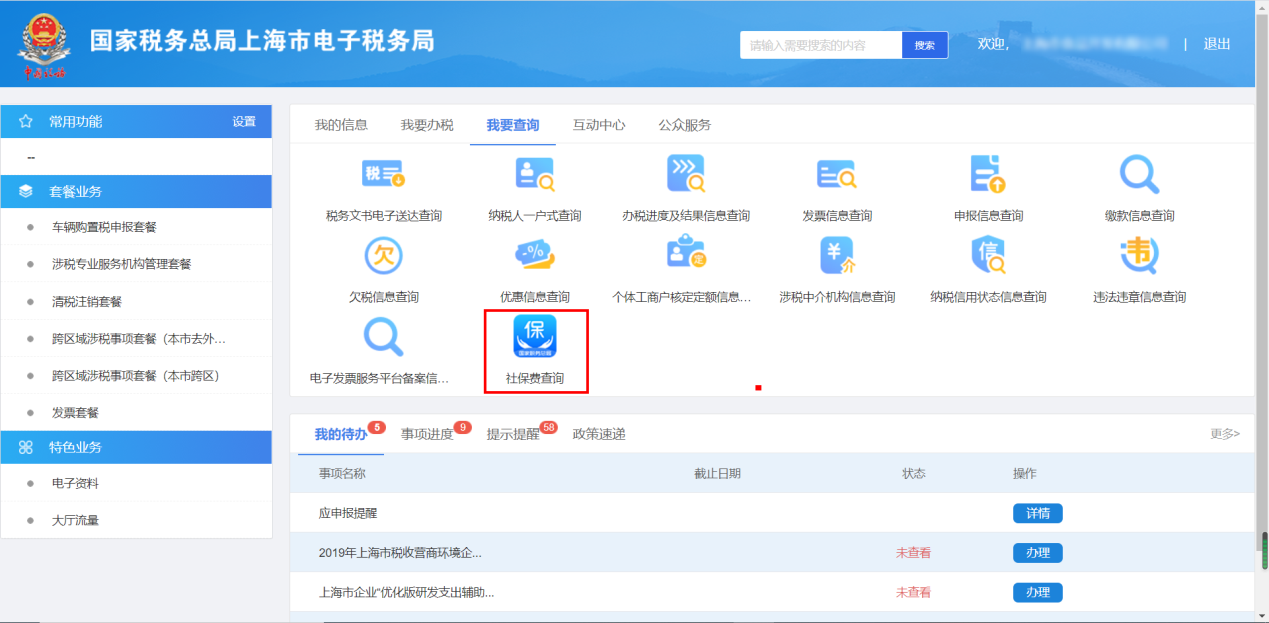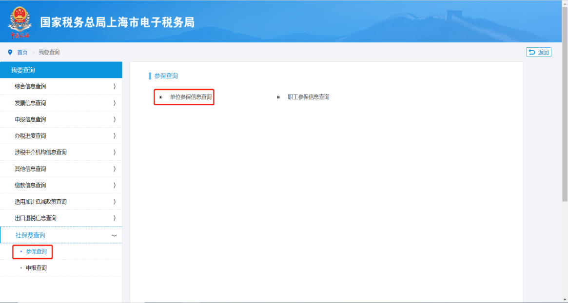 【电子税务局】—【我要查询】—【社保费查询】—【参保查询】—【单位参保信息查询】